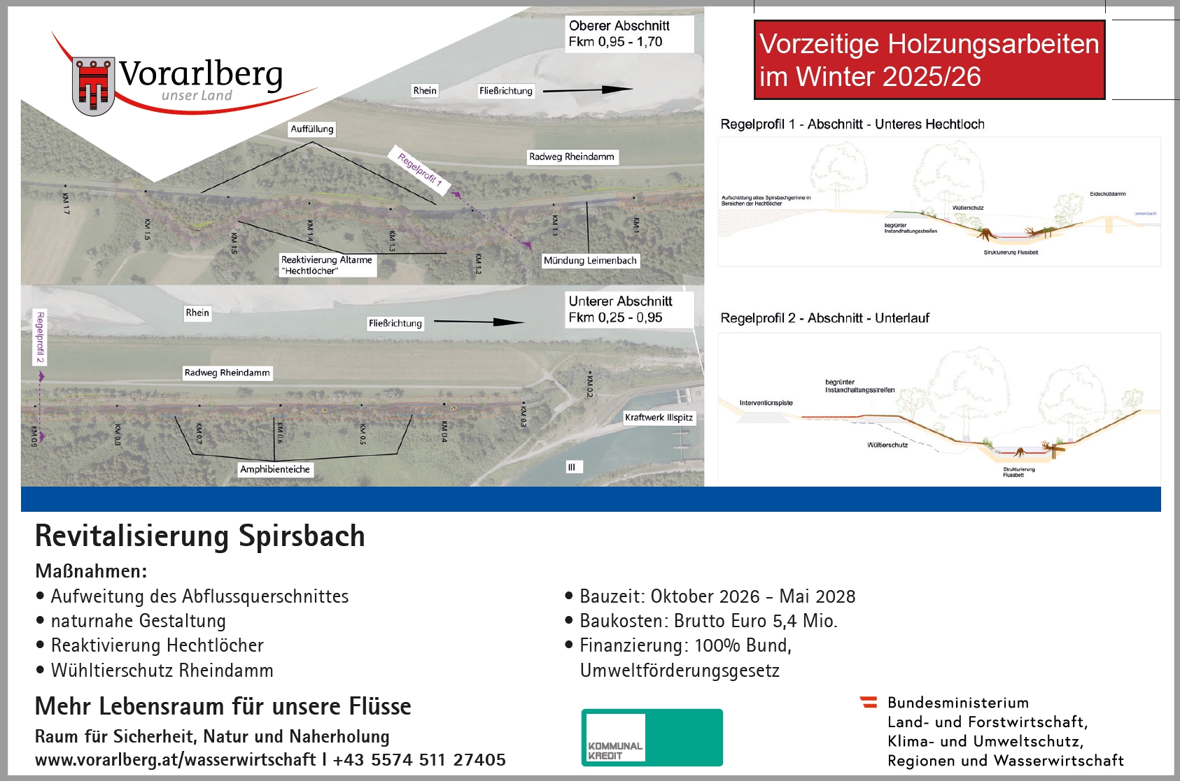 Anfang Januar 2026 wurden die notwendigen Rodungsarbeiten für die geplante Renaturierung des Spiersbachs begonnen. Die Arbeiten werden von der Agrargemeinschaft Altenstadt im Auftrag der Abteilung Wasserwirtschaft des Landes Vorarlberg durchgeführt. Im Anschluss an die Rodungsarbeiten erfolgen die erforderlichen Vermessungsarbeiten, bevor im kommenden Herbst die eigentlichen Bauarbeiten beginnen.